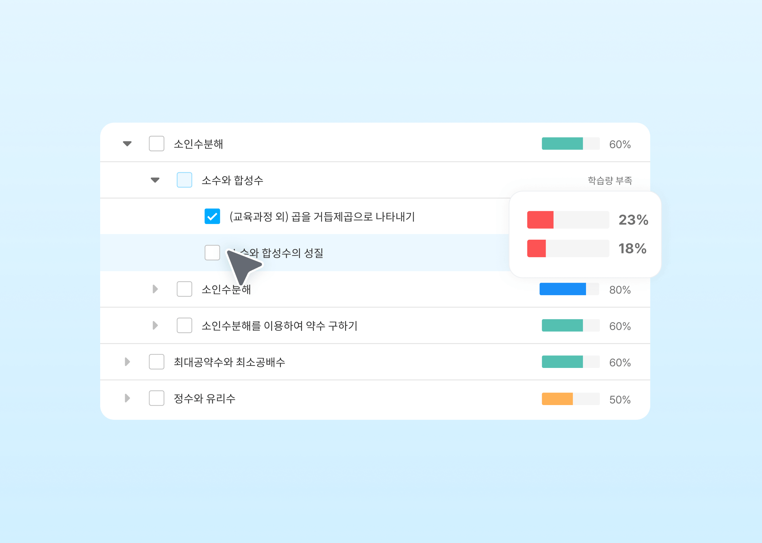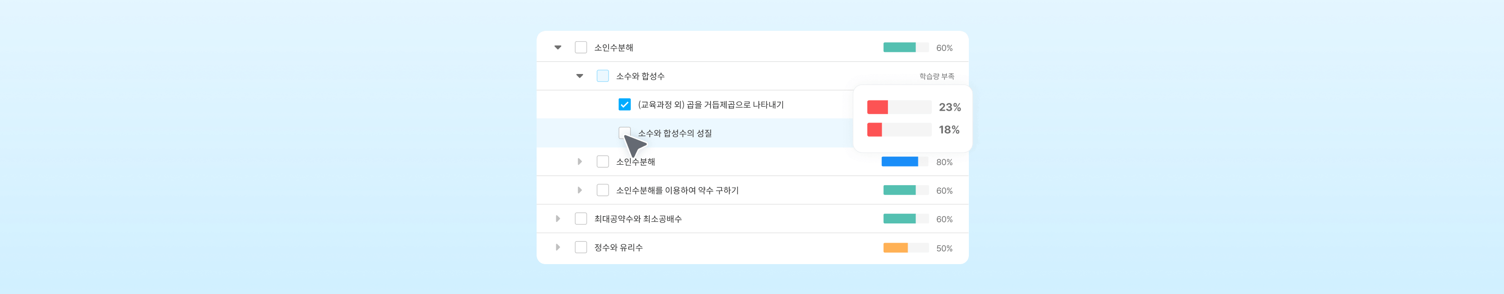 학생이 본인의 학습 성취도를 컬러로