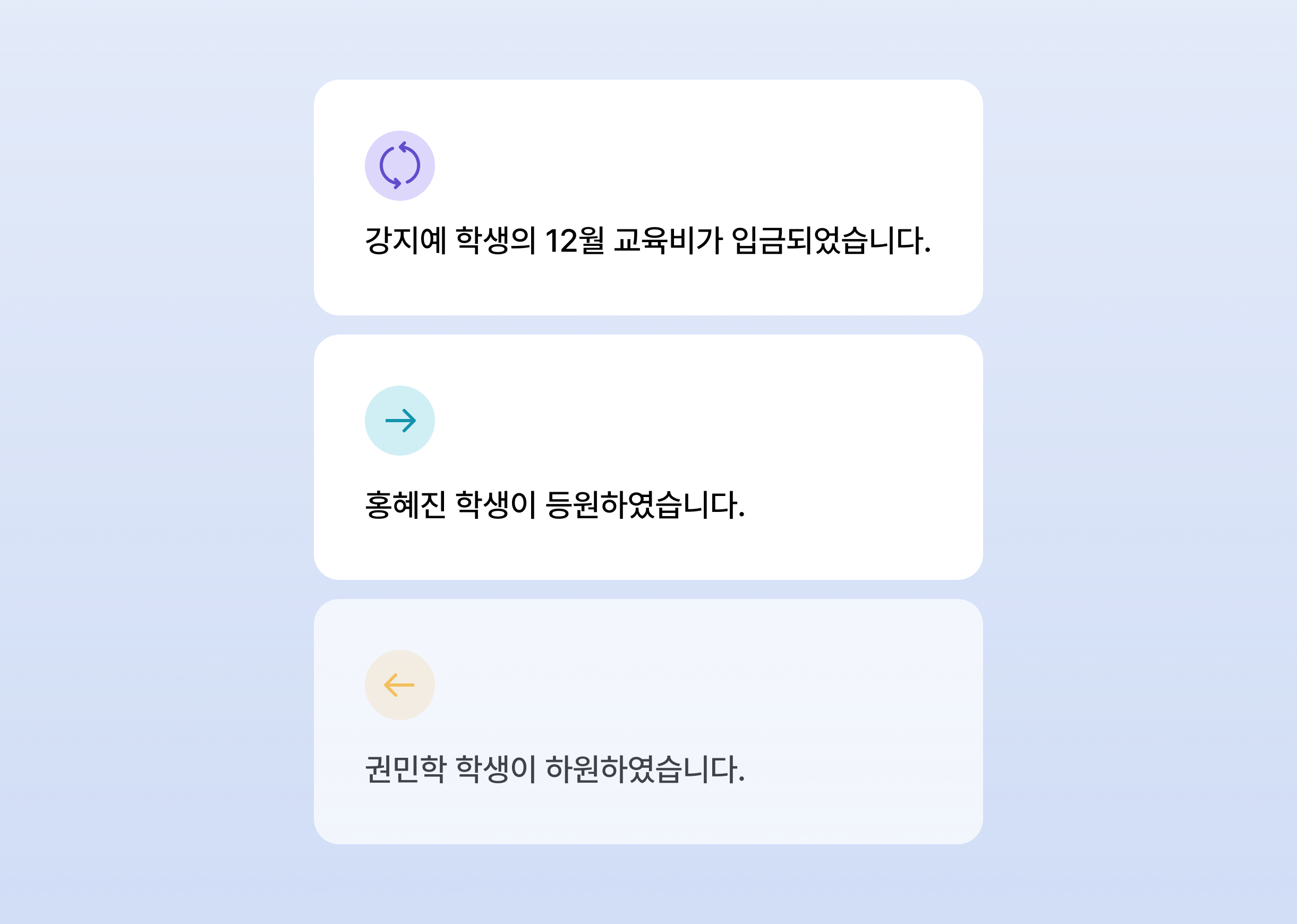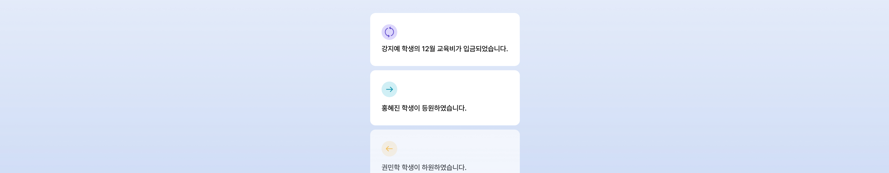 학생들의 출결 및 교육비를 스마트 기기로 관리할 수 있습니다.