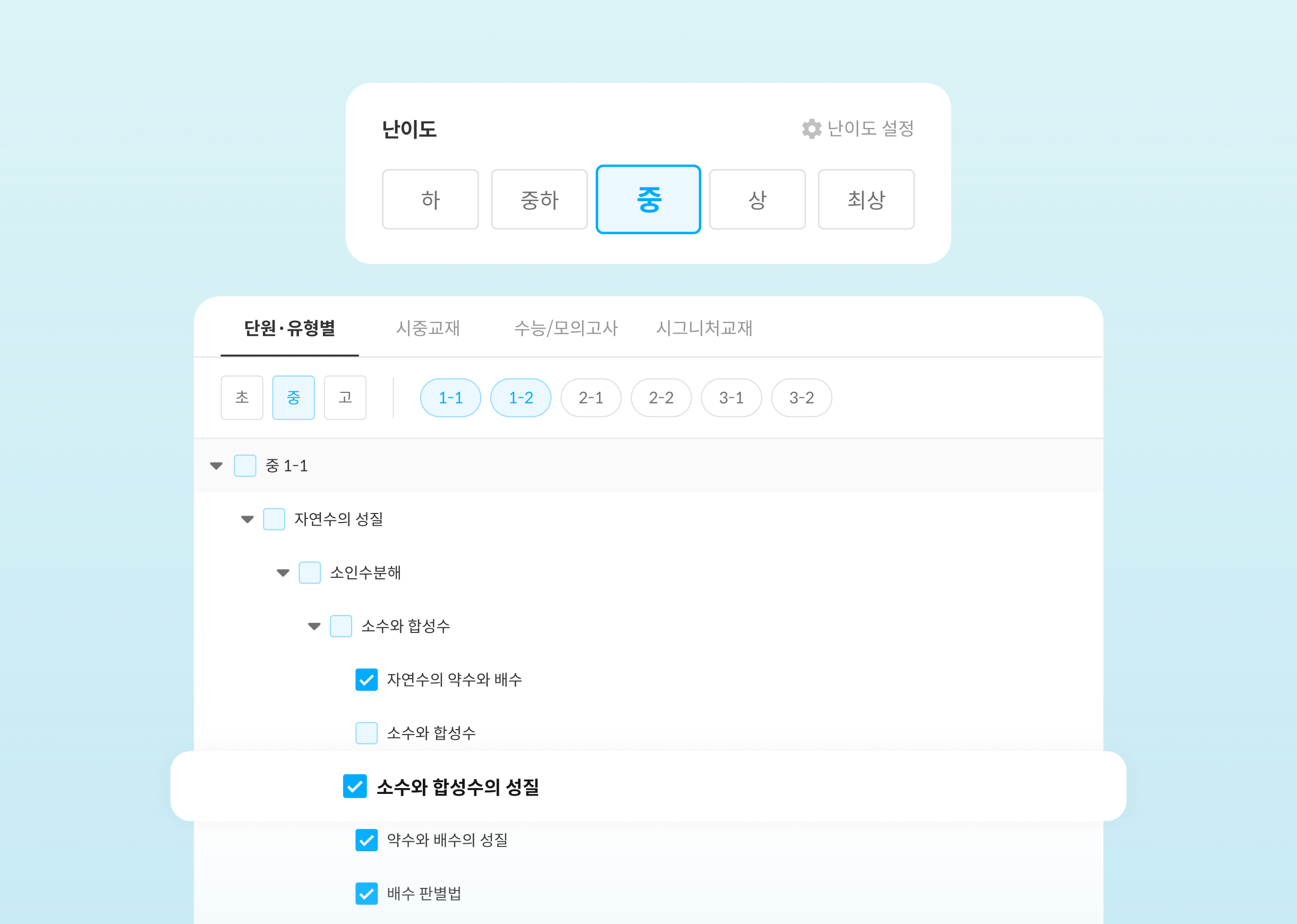 개념 콘텐츠 선택